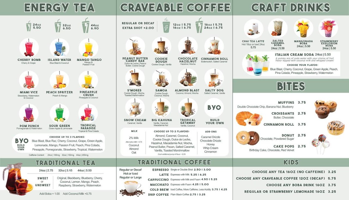 Welcome to Charged Cafe, a delightful gem located at 1415 NW 67th St, Lawton, OK. This cafe is perfect for those seeking quality coffee and energy-infused drinks. Their extensive menu caters to every craving, from traditional coffees like Espresso and Latte to unique Energy Teas such as Cherry Bomb and Peach Spritzer.